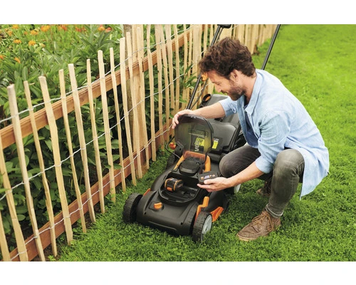 Deze elektrische grasmaaier werkt ook waar geen stroomaansluiting in de buurt is. Dankzij de twee accu’s is hij onafhankelijk van een stopcontact. De accugrasmaaier WORX WG 743 werkt met 2 afzonderlijk accu’s van 20 V, samen 40 V wanneer ze in de grasmaaier zijn gekoppeld. De maaier kan een gazon bijhouden tot 500 m² wanneer je 2 keer in de week maait. De maaihoogte is instelbaar van 20 tot 80 mm. De hoogte van de handgreep is in zes standen te verstellen. De maaier heeft een gewicht van 19 kg inclusief. Dit apparaat wordt geleverd met twee batterijen, een oplader en mulchkit.