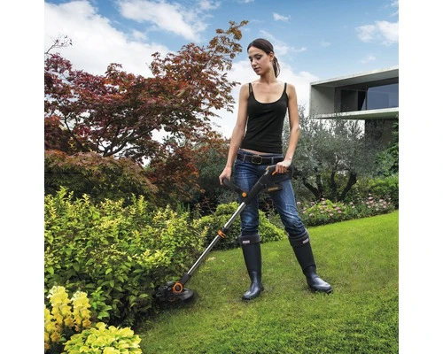 Met deze strimmer kom je in elke hoek van je tuin. De 20 V accu zorgt ervoor dat de 1,65 millimeter dikke draad op gang komt. Exclusief de accu weegt de 30 cm brede grastrimmer slechts 2,4 kg. Ook de verstelbare tweehandige handgreep draagt bij aan het comfort. Het verlengen van de draad is ook eenvoudig. Dit gebeurt automatisch als je de accu grastrimmer inschakelt.